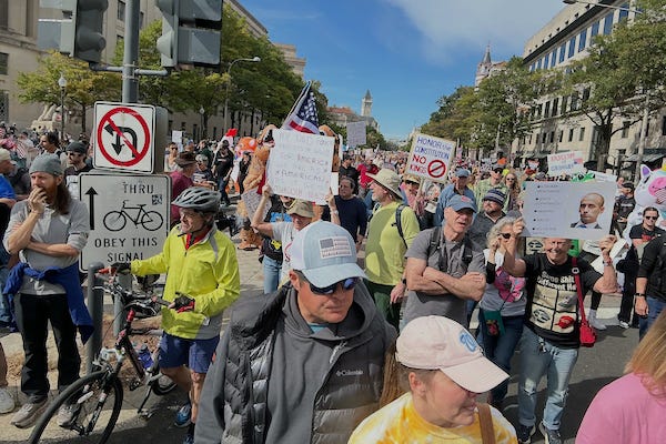 I’d nevertheless resolved many weeks ago to attend the DC No Kings rally for reasons I laid out in Friday’s newsletter. Arresting this slide into fascism is the greatest calling in the lives of every American who recognizes and opposes what is happening. Plus, every few years or so, history in the making is weighty enough to want to lay eyes on it.