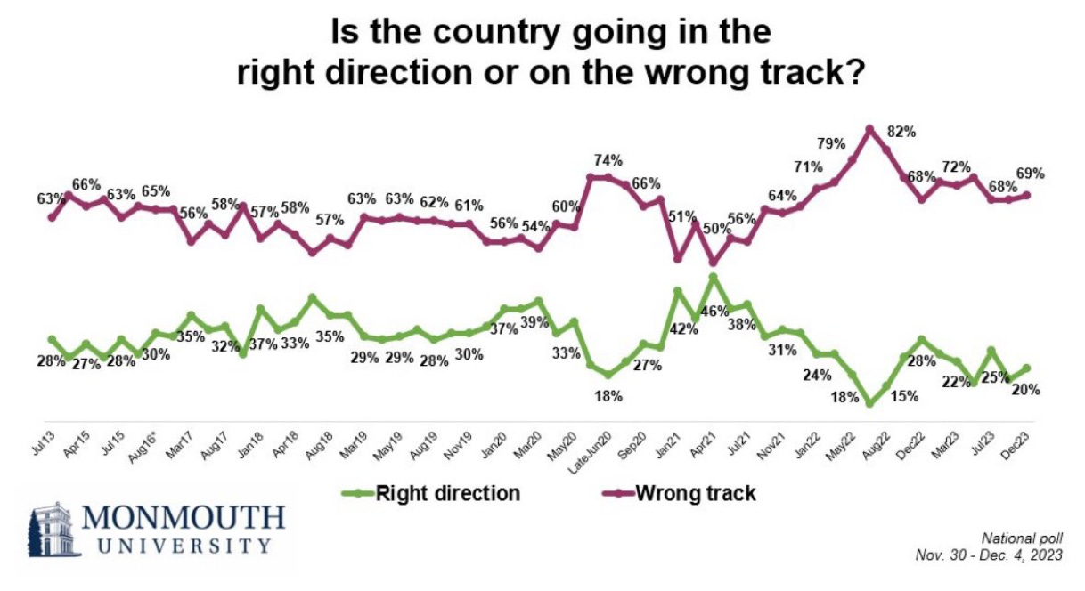 The broader vibes are almost as bad now as when inflation peaked over a year ago, hovering close to where they were in mid-2020, when Donald Trump’s COVID-19 failures had killed tens of thousands of Americans and confined tens of millions of people to their homes for months. Something significant is clearly at work on the national psyche if people feel no more optimistic now than they did in the depths of the pandemic.